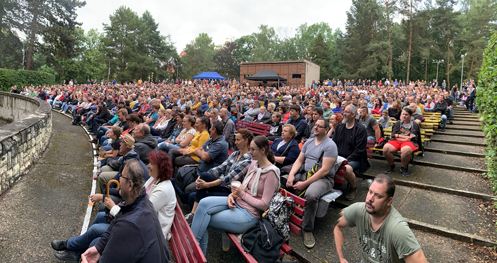 Fotografie z prvních letních koncertů 23. a 25. 6. 2021 v zámecké zahradě v Kroměříži a v letním kině ve Slaném.